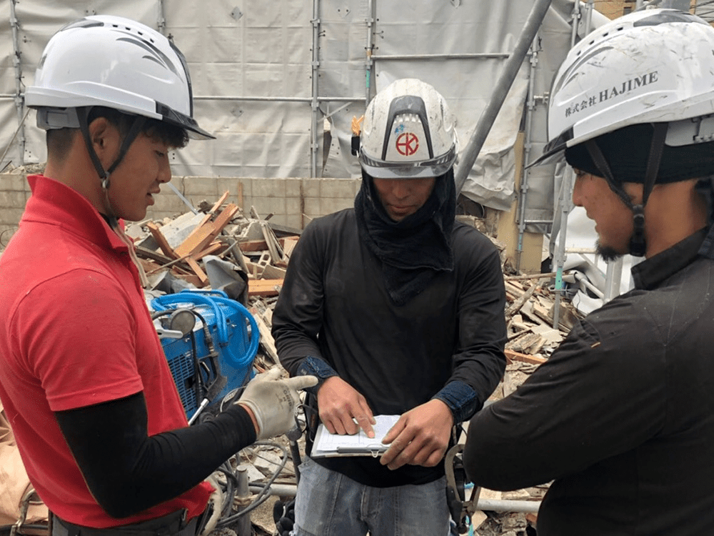 危険な場所や、壊れやすいものなど人身、物損事故に繋がる危険なポイントを工事に入るスタッフ全員で確認します。